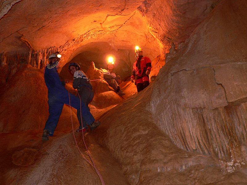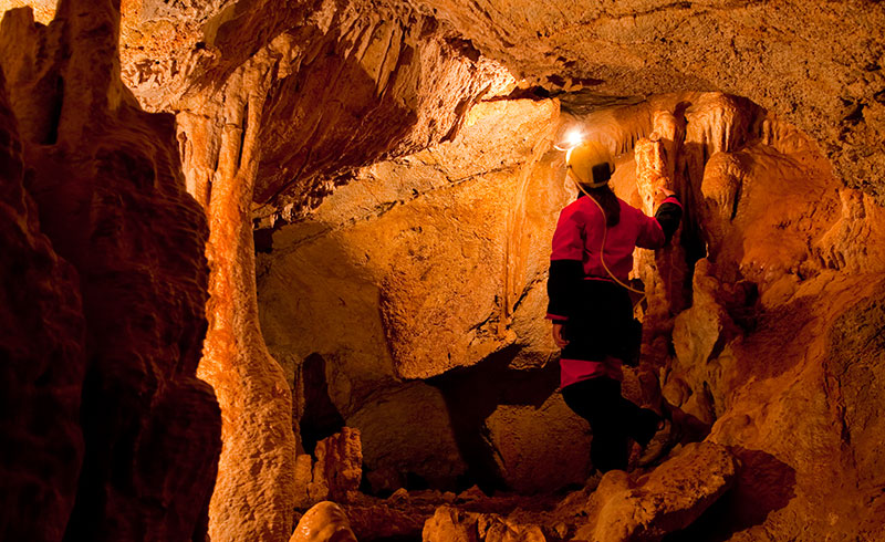 Se realizan excursiones de espeleología para toda la familia, guiadas con seguridad a través de túneles de piedra caliza.